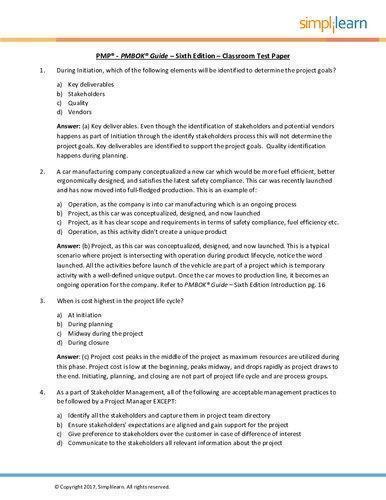 Pmp Pmbok Guide Sixth Classroom Test Paper Questions And Answersn (PDF Instant Download)